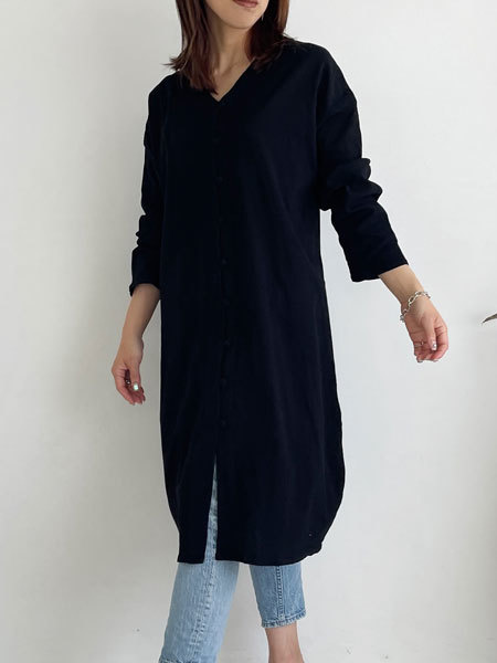 丸みを帯びたシルエットですが、体型を拾わずロング丈の為、