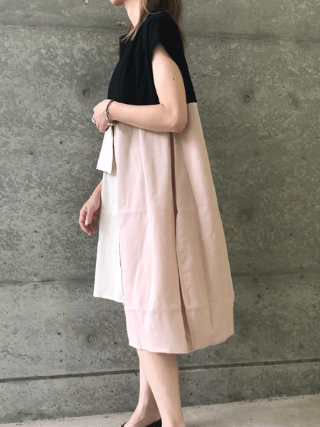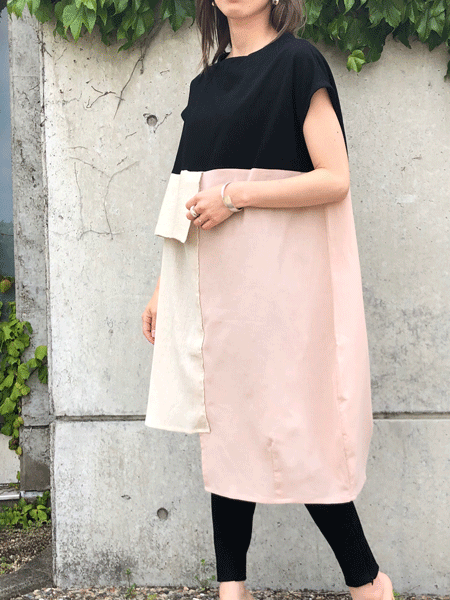 左右非対称だけでなく、360度どの角度も違った印象のワンピース。