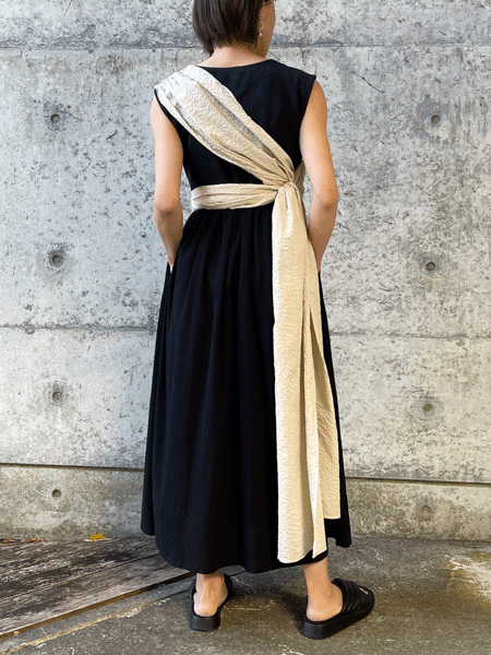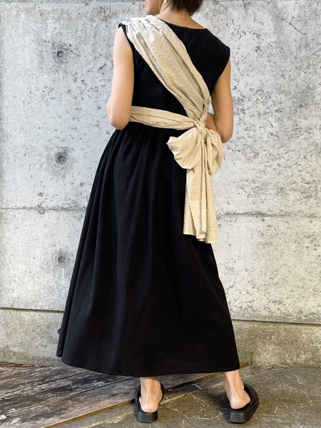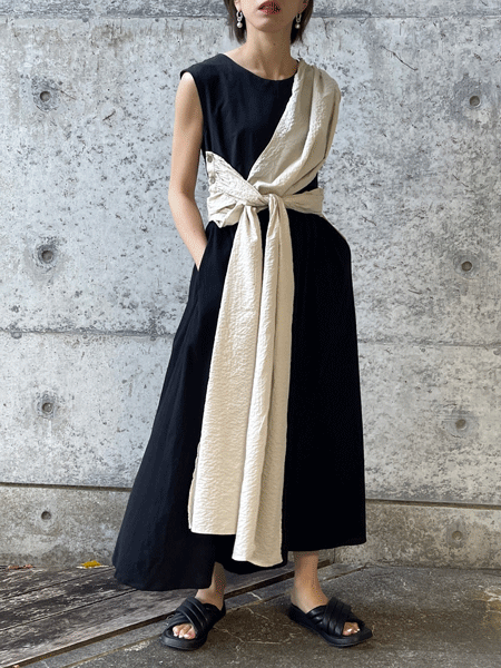トップスとスカート、リボン全てが異素材で出来ているので優しくもあり、上品でもあり、カジュアルにだって着こなせる優秀ワンピースです。