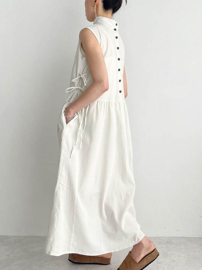 ウエストリボンを両サイドで結ぶことも、前後で結ぶことも出来るので様々な着こなしをお楽しみいただけます。