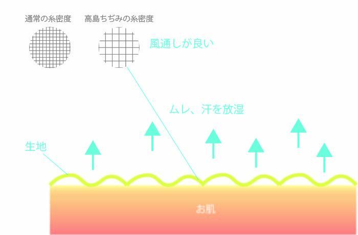 「吸収性・速乾性に優れ」 「肌への接触が少なく、べたつきや蒸れを抑え」 「肌にも優しい」