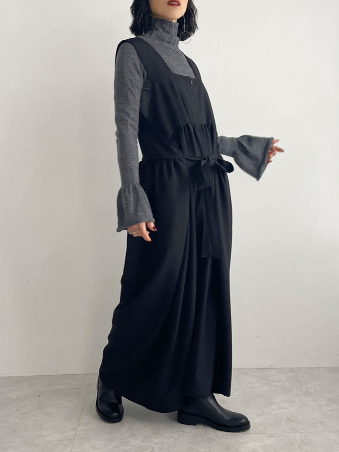 ウエストサイドについたリボンを前や後ろで結んでいただくと、違ったサロペットにも見えます!