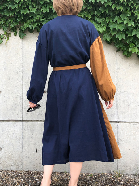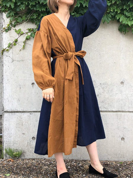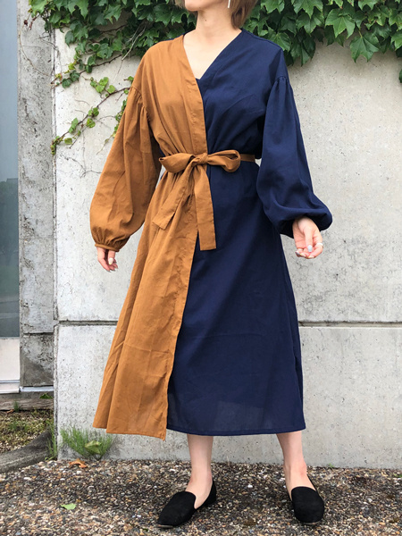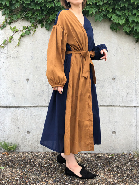 後見頃が半分キャメル、半分ネイビーのバージョン(A)も別ページにて販売しています。