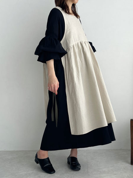 私服でも使えるようなワンピースタイプなので、ごみ捨てやちょっとしたお買い物にも付けていけるエプロンだと思います。