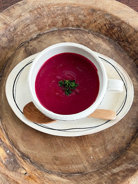 ぷっくり、ころーんとした愛らしいスープマグです。