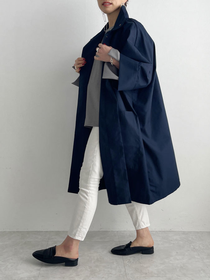ゆったりサイズなので中に着込むことも出来、一年通して長く使えるアウターです。