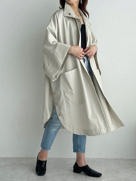 1枚でサマになるのでコートを主役にコーディネート組むことも出来るし、スリットから見えるボトムとの相性を考慮したコーディネートもお楽しみいただける1枚だと思います。