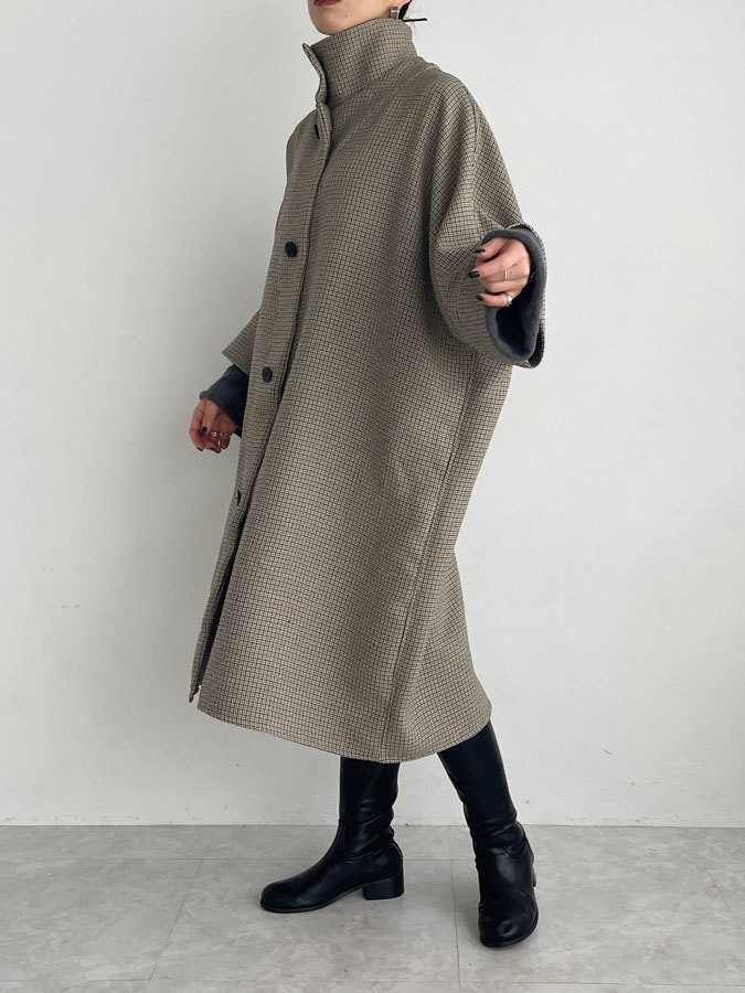 厚手のニットやパーカーの上からも余裕で羽織るこのが出来る、ゆったりたっぷりなサイズ感です。
