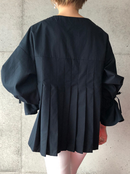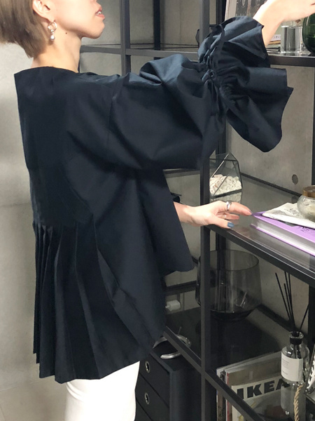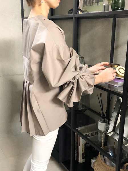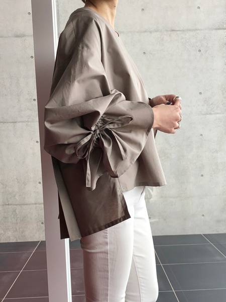 大きなバルーンスリーブが腕を華奢に見せてくれるので、