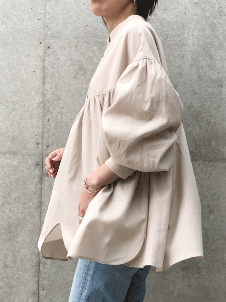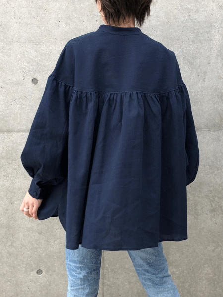 ふんわりギャザーのスタンドカラー
