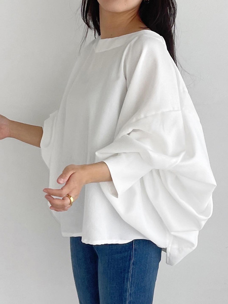 身頃から袖が繋がっているので、通常のドルマントップスよりふっくらとしたシルエットが出来上がります。