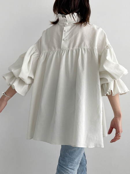 バストが大きい方やウエストが気になる方にもおススメのブラウスです。