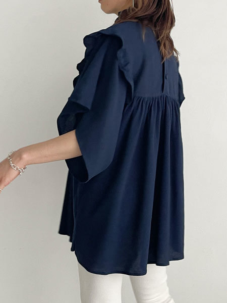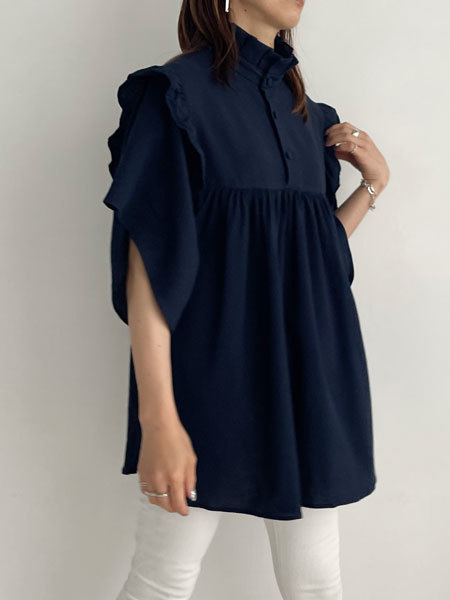 人気のフリルネックから夏バージョンのブラウスが誕生しました。